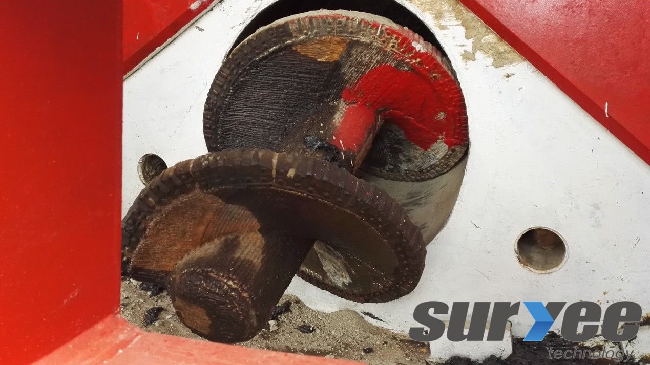 絞龍葉片磨損主要在葉片邊緣,離葉輪內緣越遠,其磨損程度越嚴重。在工作時,葉片擠壓物料,葉片受力相當于截面輸送機變載荷作用于懸臂上,離傳動軸越遠,受力越大,變形量也越大,產生空洞形成裂紋的數量也越多,從而導致葉片磨損量變大,且外緣磨損遠遠大于內緣磨損。因螺旋輸送機出口處對于葉片沖擊滑移摩擦力大,靠近出口處葉片所受軸向力變大,所以出料處口葉片磨損較進料口處葉片磨損大。