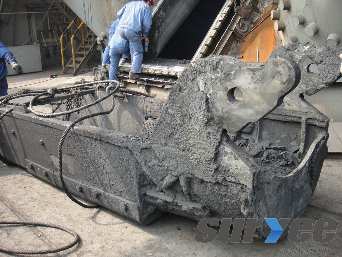 布料溜槽是高爐無料鐘爐頂的重要部件,其作用是將焦炭、球團礦、燒結礦、其它礦及添加劑以最佳方法分配到高爐內,對高爐的穩定運行起著至關重要的作用。由于高爐布料溜槽位于高爐爐腔頂部,工作環境處在高溫500℃左右,長期受到高速料流的沖擊,爐況不順時最高溫度可達700℃以上,會加劇材料的磨損和侵蝕,因此布料溜槽易變形、磨損。一旦溜槽磨損嚴重或被磨穿時,燒結礦用小粒度的焦炭最先從漏洞直接入爐,從而造成中心堆積,渣鐵分離差,上渣帶鐵多,渣口大量損壞,爐況運行也會遭到破壞。