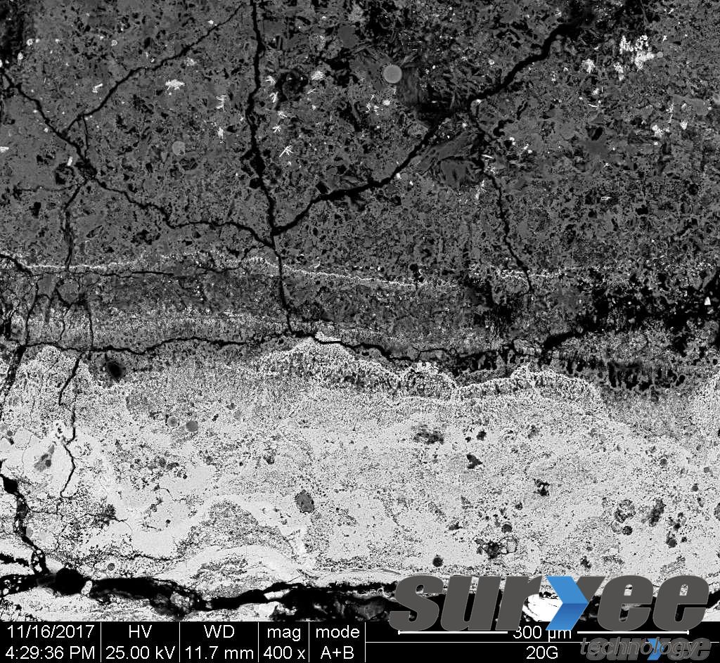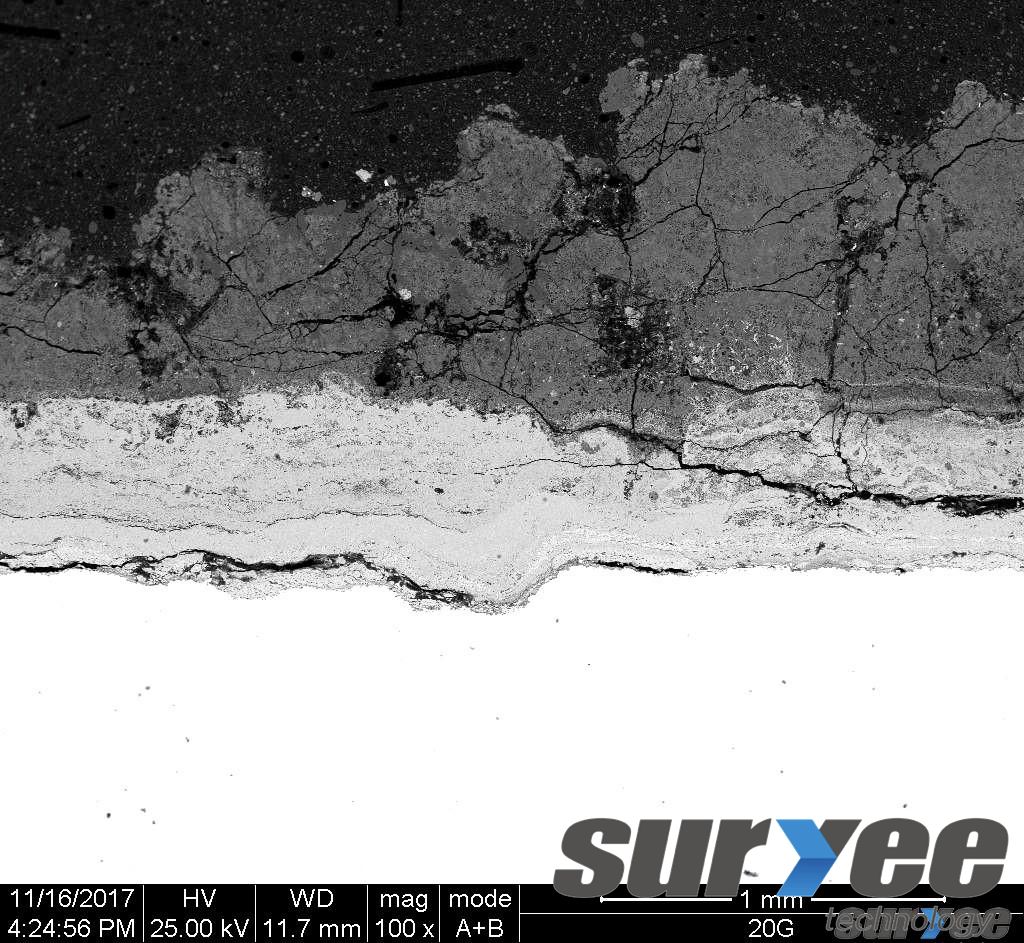 由于金屬離子在熔融鹽中的擴散速度較大,因此這一電化學過程嚴重侵蝕 鍋爐的水冷壁、過熱器等部位的金屬構件,導致其性能提前退化,如下圖: