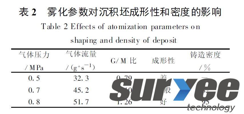同時,隨著沉積過程的進行,沉積體和基板吸收的合金液滴帶來的熱量越來越多,溫度不斷升高,從而導致凝固速率減小。因此,提高冷卻速率并保證凝固速率穩定,是噴射沉積技術工藝過程控制的關鍵。