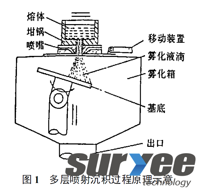噴射沉積是近30年發展起來的利用快速凝固方法直接制備金屬材料坯料或半成品的一種先進的成形技術,主要由熔融金屬的氣體霧化、霧化熔滴的沉積等連續過程組成。