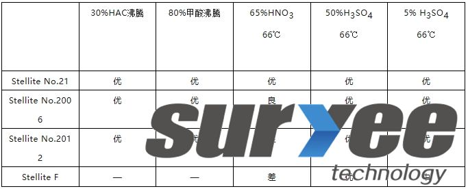 Stellite No.31 | 25.5 | — | 7.5 | 0.5 | 10.5 | 2.0 | Mn1.0 | 余量 |