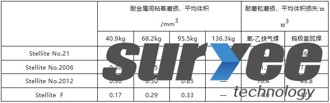 表3 鈷鉻鉬鎳鐵耐金屬間粘著磨損和耐磨粒磨損性能